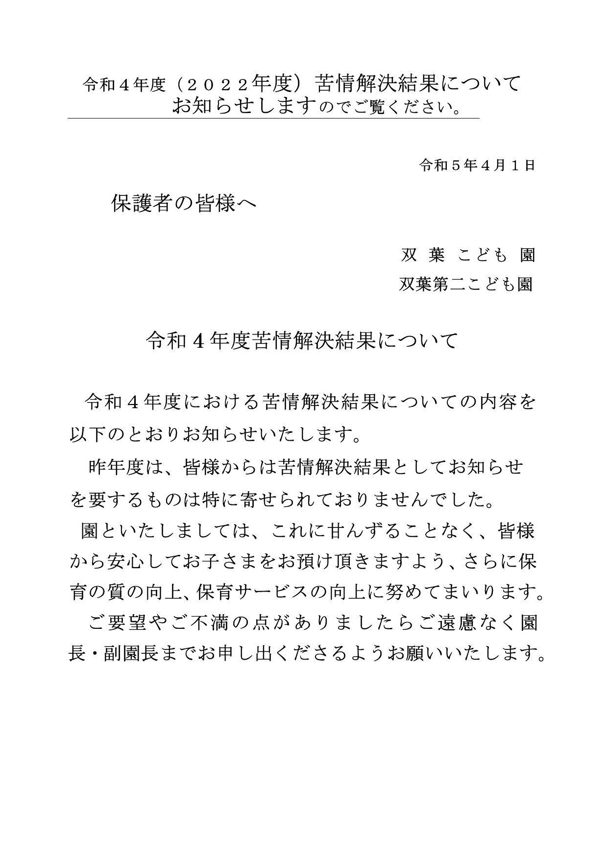 令和4年度苦情解決結果についてお知らせいたしますのでご覧ください。