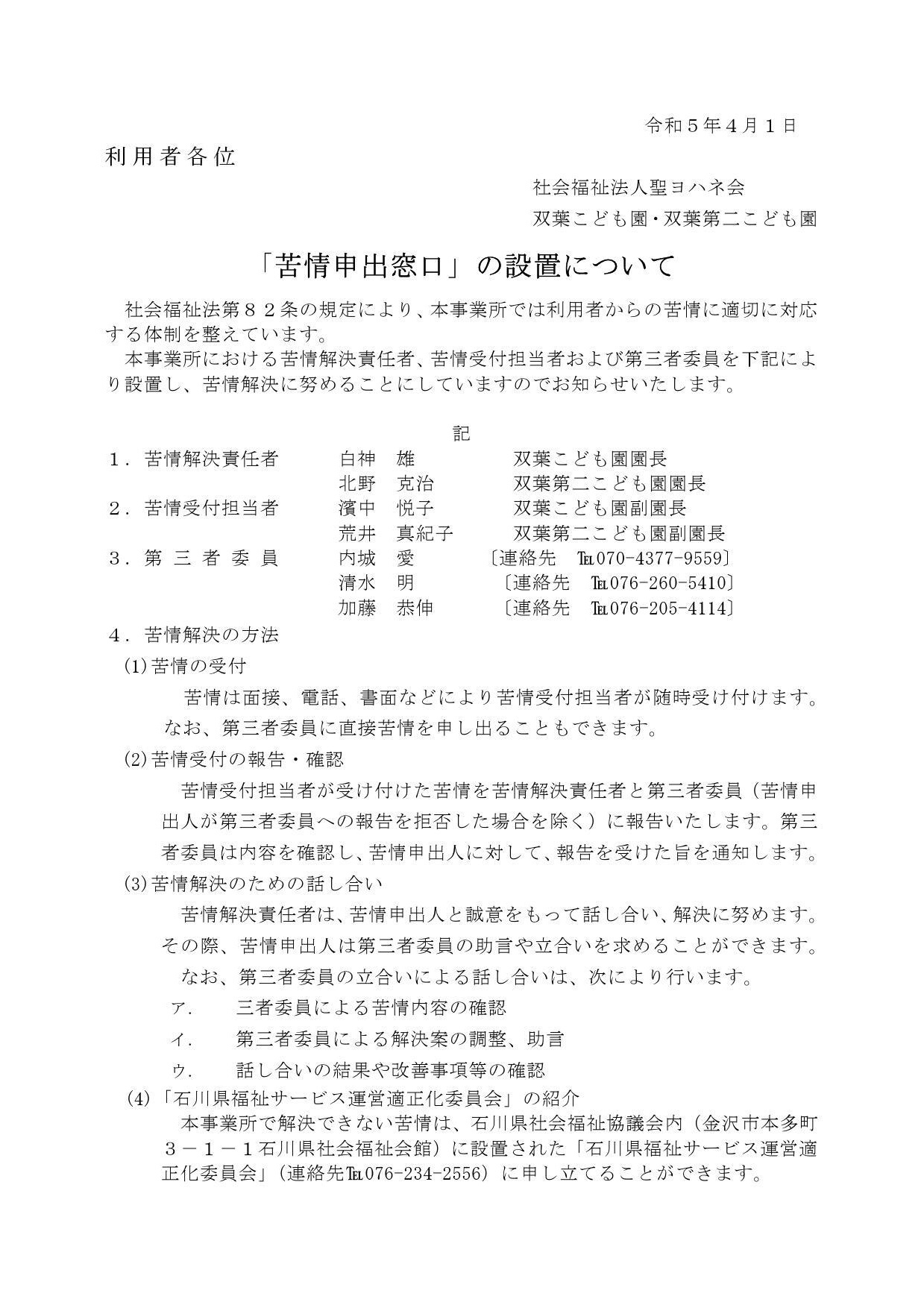 令和4年度(2022年度)苦情解決結果についてお知らせ