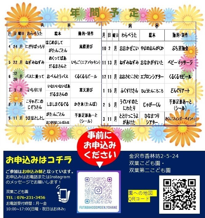 ◎双葉こども園、双葉第二こども園では、全体的な計画の下、上記の保育・教育課程、年間指導計画に従って、